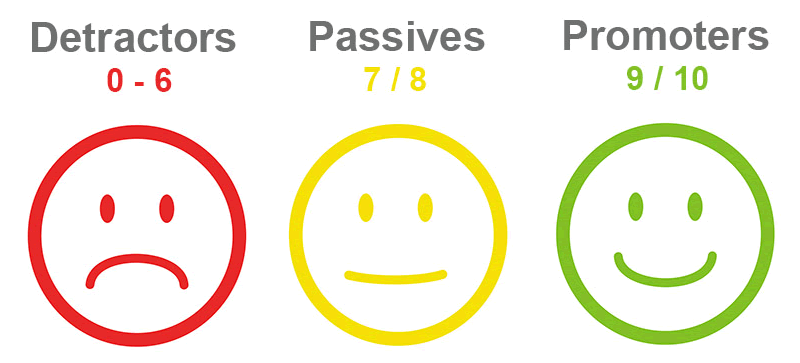 Subtracting the percentage of Detractors from Promoters reveals the NPS score. For example, if 35% of the audience are Promoters (i.e., assign a rating of 9 or 10) and 40% are Detractors (assign a 0-6), then the Net Promoter Score is -5%.